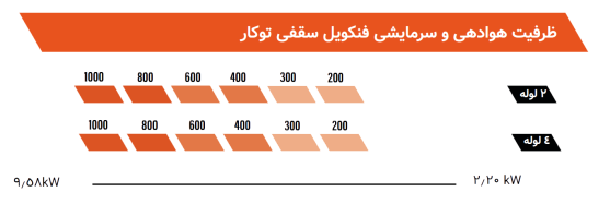 مجهز به کویل سه ردیفه برای سقفی توکار و چهار ردیفه برای کانالی: کویل مسی با فینهای آلومینیومی